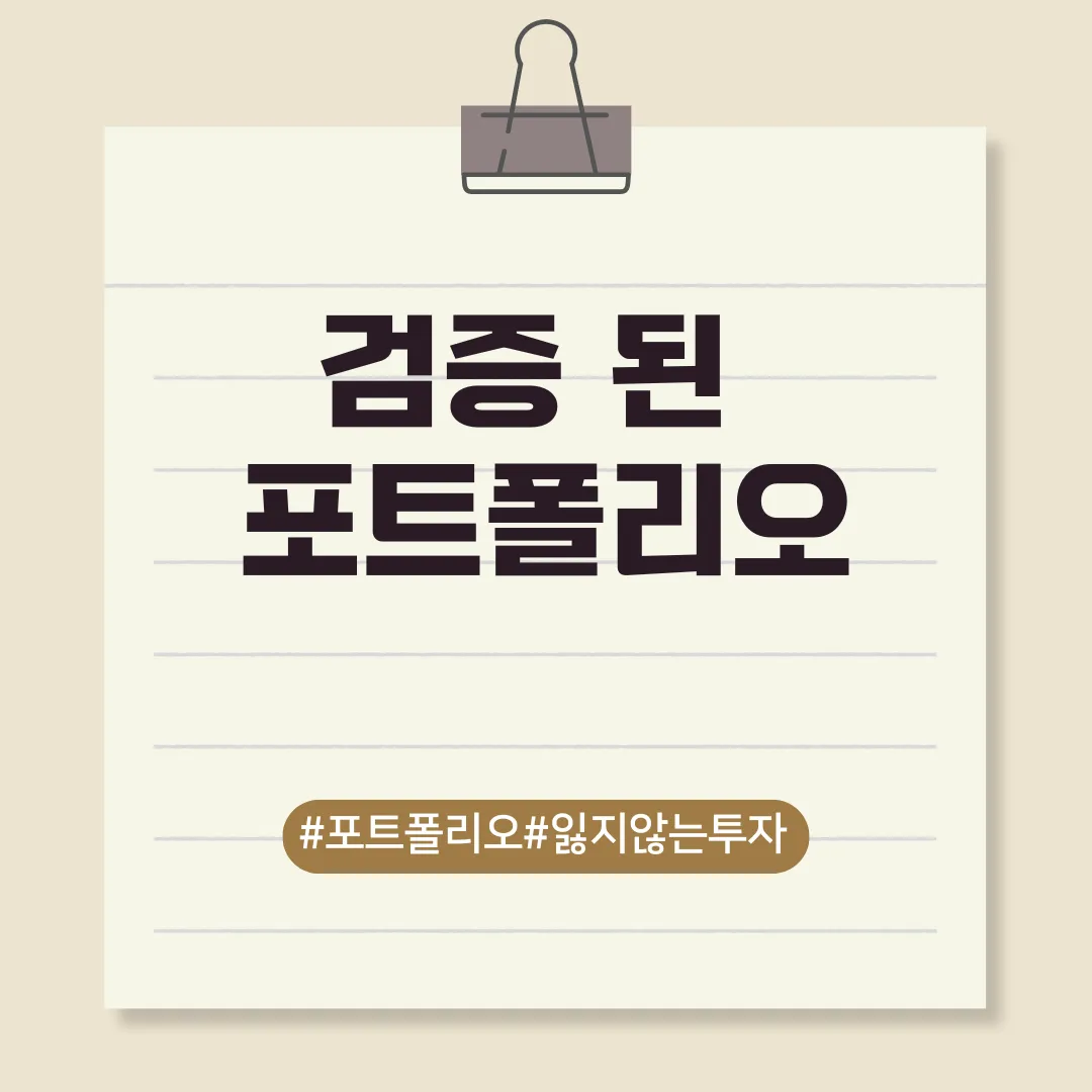 자산의 일부는 공격적으로 운용하더라도, 전체 자산의 기둥은 검증된 포트폴리오로 튼튼하게 세우시길 권장합니다.