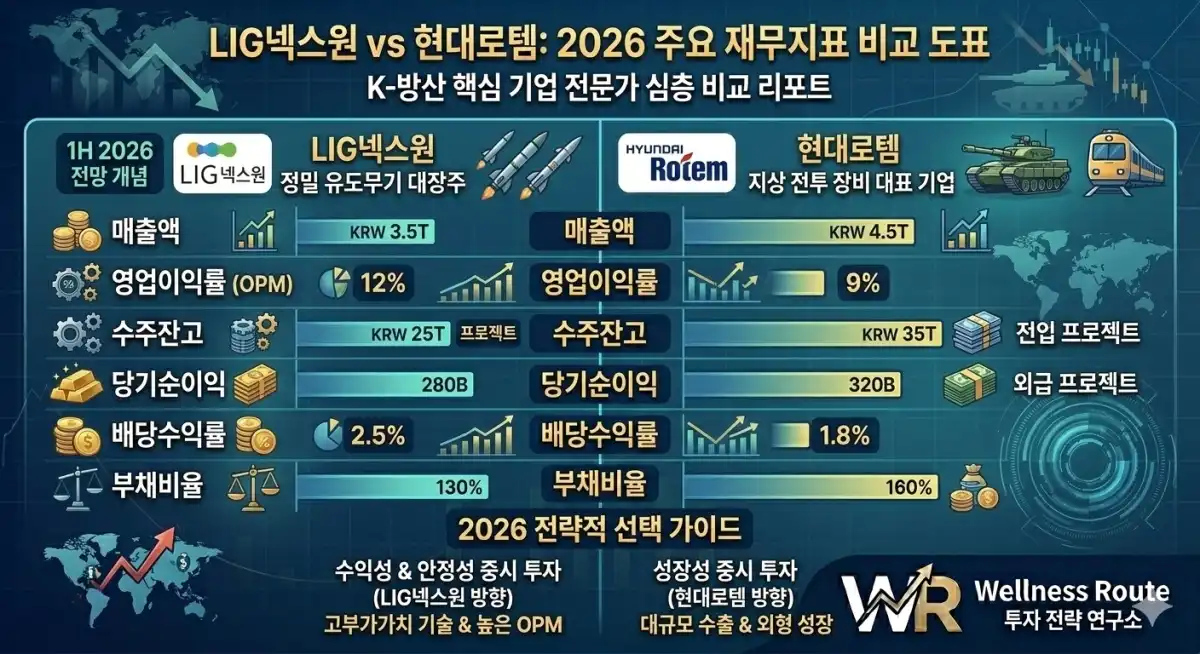- 안정적 수익성 중시: 제품 단가가 높고 소모품(미사일 등) 교체 수요가 꾸준한 LIG넥스원이 적합합니다. 고금리 환경에서 이익의 질이 높은 기업은 상대적으로 주가 방어력이 높습니다.